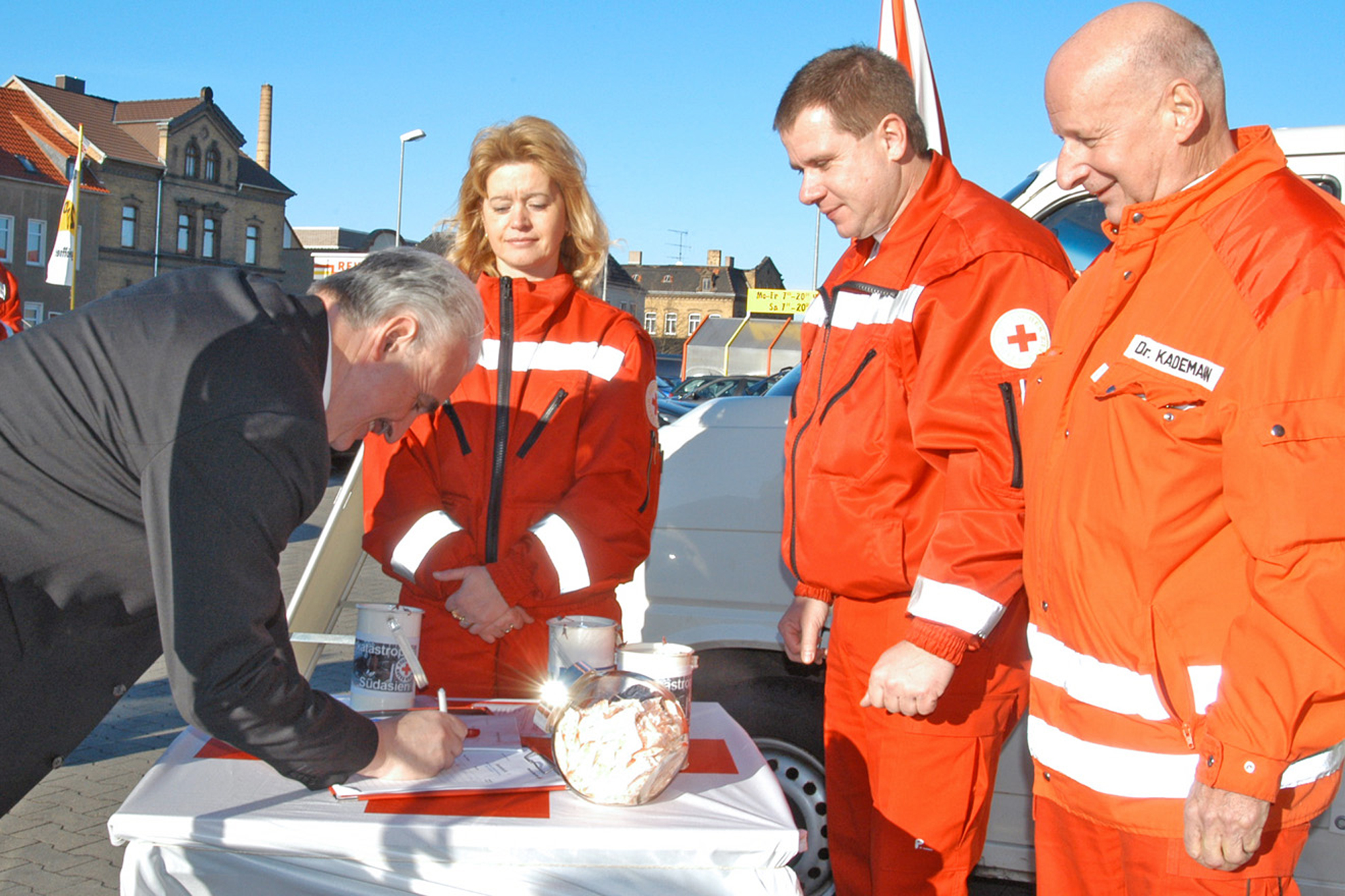 In Erinnerung geblieben seien auch die Herausforderungen bei den beiden grundhaften Um- und Ausbauten der Delitzscher DRK Geschäftsstelle 1980 und 2002. Ebenfalls erinnerungswürdig der humanitäre Hilfseinsatz im zuletzt genannten Jahr nach der Mulde-Flut in Eilenburg und die umfangreichen medizinischen Vorbereitungen auf die Fußballweltmeisterschaft in Leipzig im Jahr 2006.