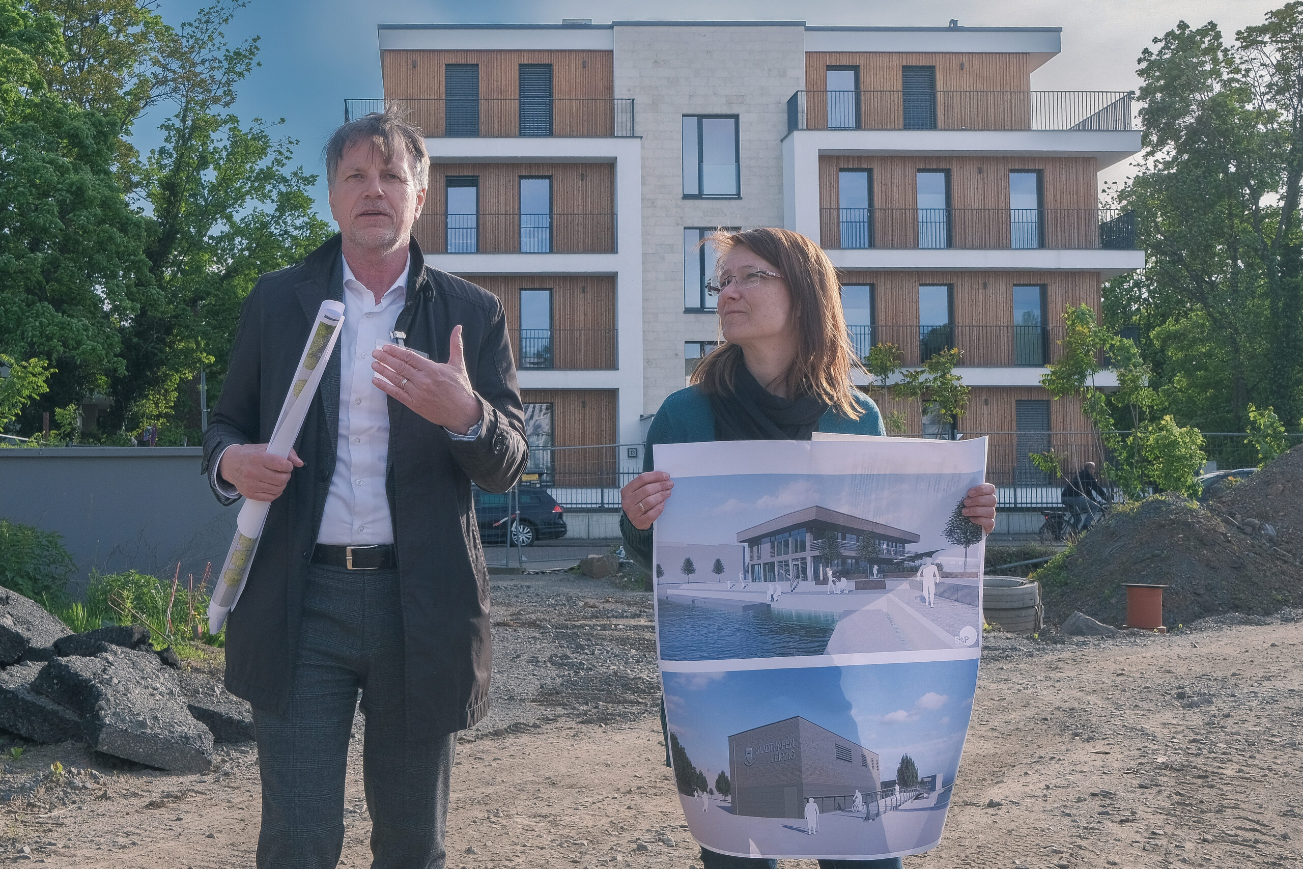 Die Vorstellung von Projekten wie hier im Leipziger Stadthafen gehört zu den Aufgaben von Amtsleiter Rüdiger Dittmar – hier mit Projektleiterin Ina Loebel. Foto: Mayla Luest
