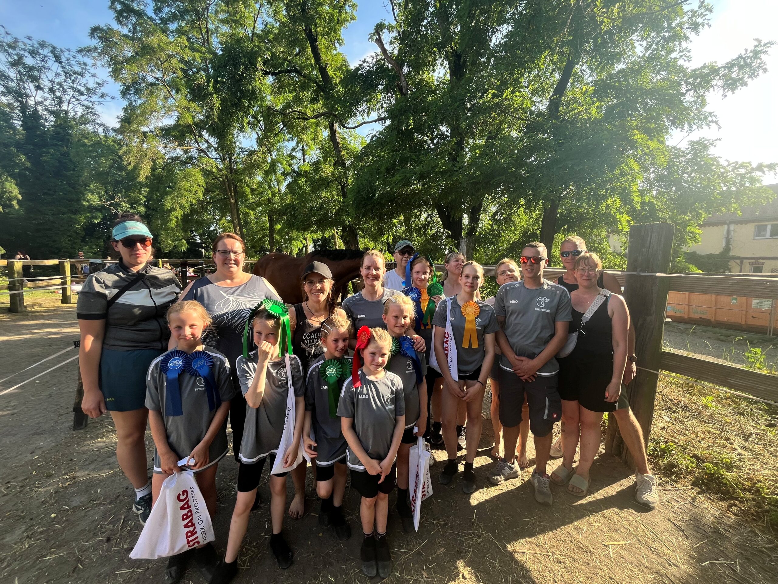 Team Pegasus nach einem erfolgreichen Turniertag: Kinder, Jugendliche, Trainerteam, Eltern – nur gemeinsam lassen sich Pferd, Training und Wettkämpfe stemmen. Foto: Team Pegasus