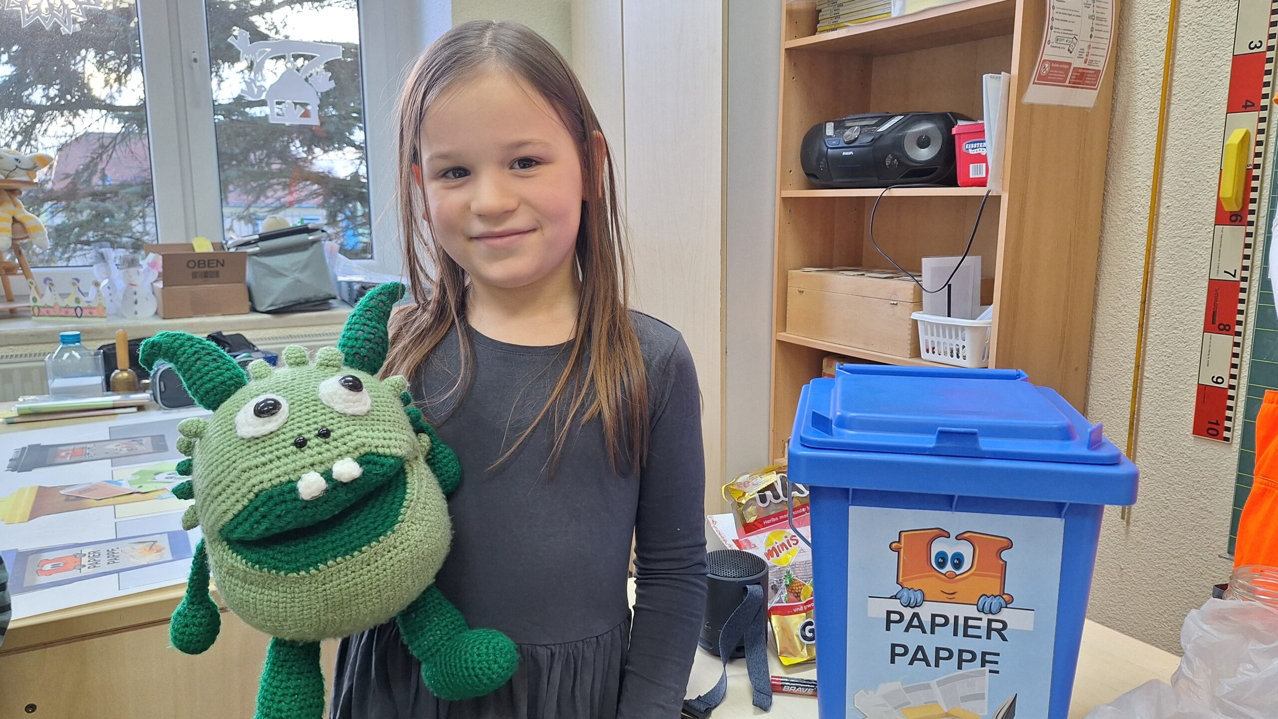 So viel Trubel um Müll, das richtige Sortieren von Abfällen und dem Erzählen, was aus den Reststoffen alles Neues entstehen kann, gibt es sonst kaum in der Grundschule in Neusornzig – außer, die Müllmonster Momo und Manni kommen vorbei. Zu mitreißender Musik singen und tanzen die beiden Handpuppen den Mädchen und Jungen der ersten Klasse Spannendes und Lehrreiches zu den Altstoffen vor – und animieren zum Mitmachen.