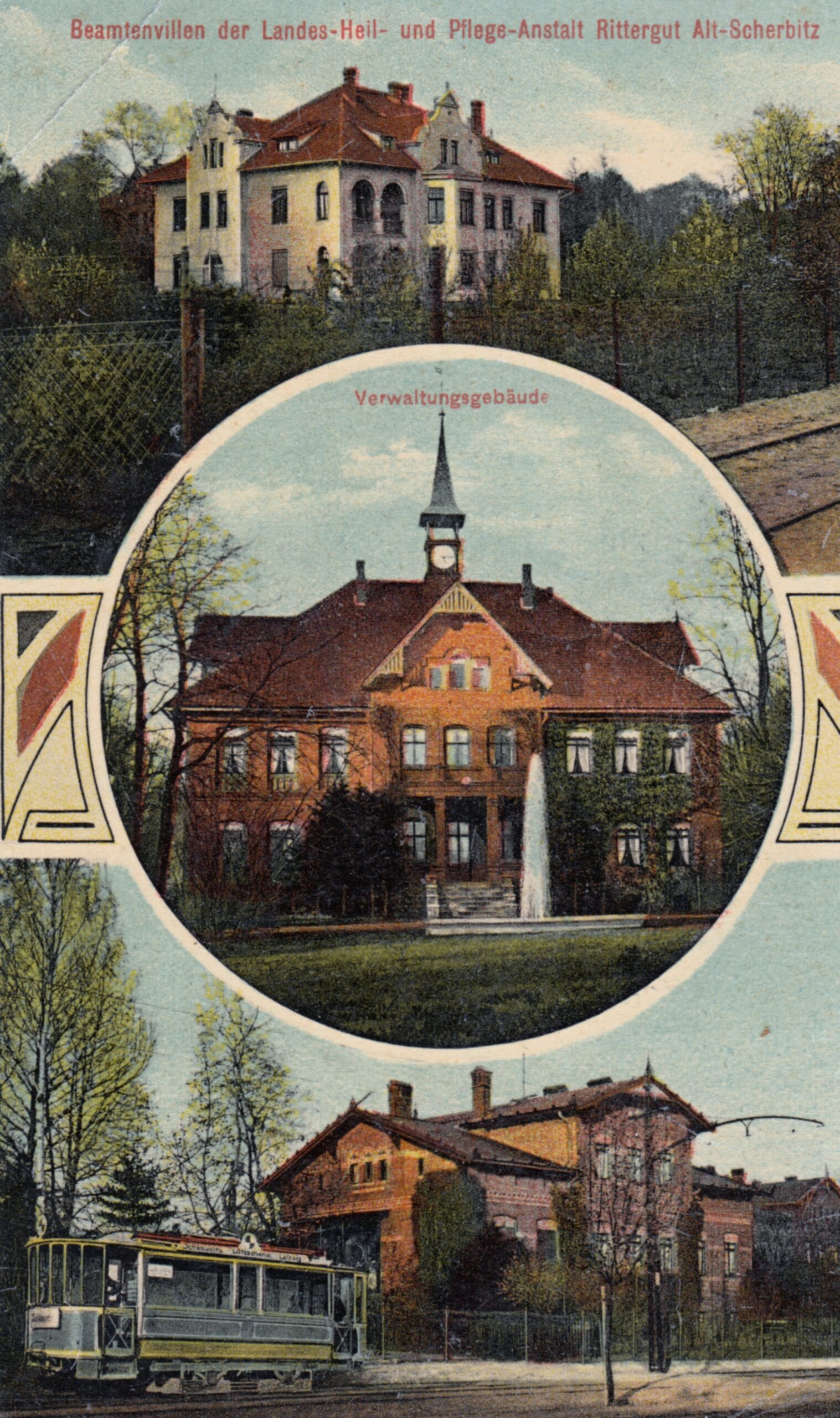 Die Gebäude der „Landes-Heil- und Pflege-Anstalt Rittergut Alt-Scherbitz“, aus der das heutige Sächsische Krankenhaus Altscherbitz hervorging, auf einer historischen Postkarte. Foto: SHK Altscherbitz