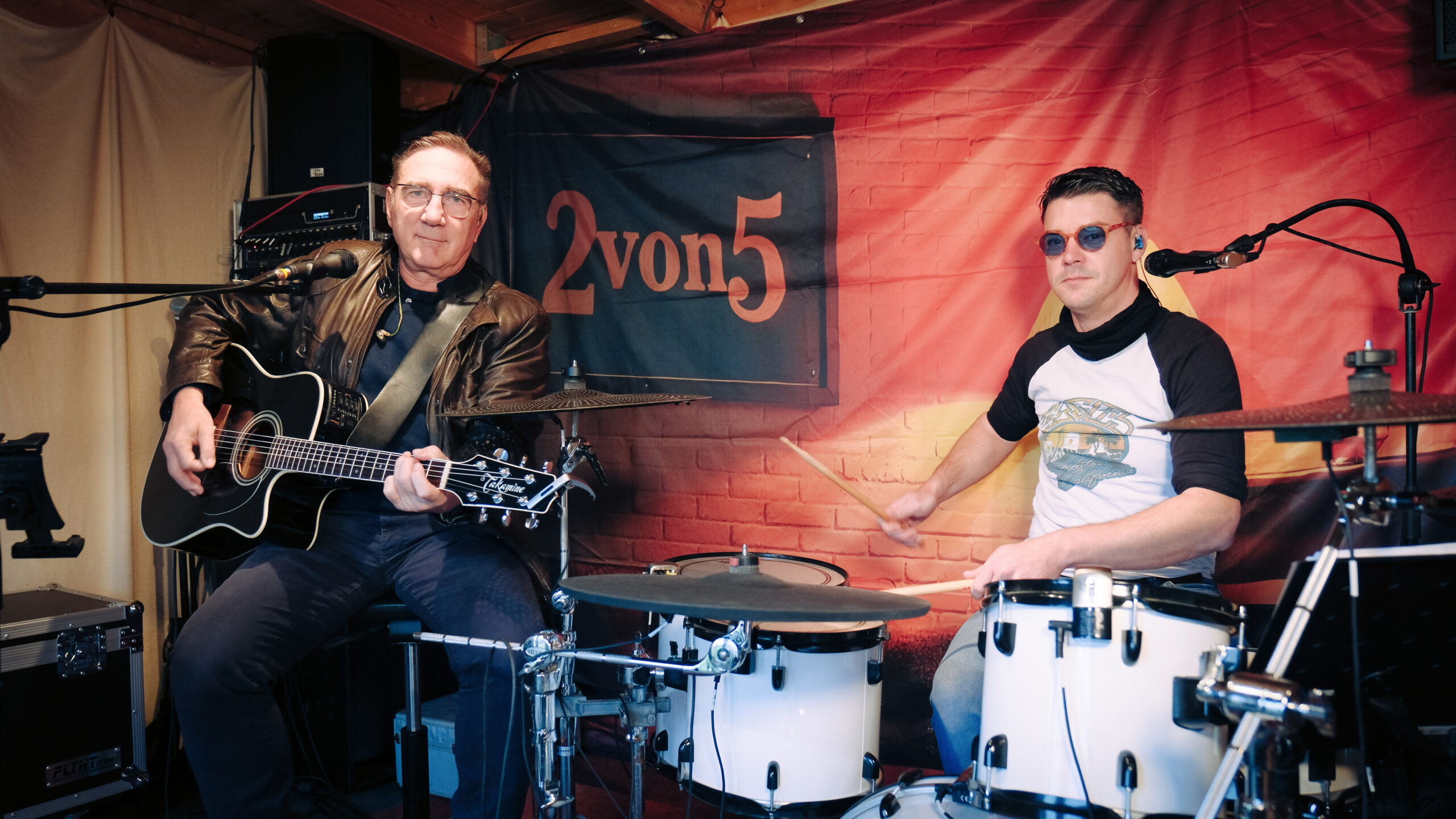 Wenn die Gäste die Augen schließen, könnten sie meinen, es spiele eine komplette Band. Öffnen sie sie jedoch wieder, merken sie: Es sind nur „2von5“, die dennoch einen erstaunlich satten Sound erzeugen. Der Bandname ist Programm: Nachdem drei Musiker kurzfristig ausgestiegen waren, setzten die verbliebenen zwei die Idee allein fort – und gründeten im vergangenen Jahr ihre Mini-Band.